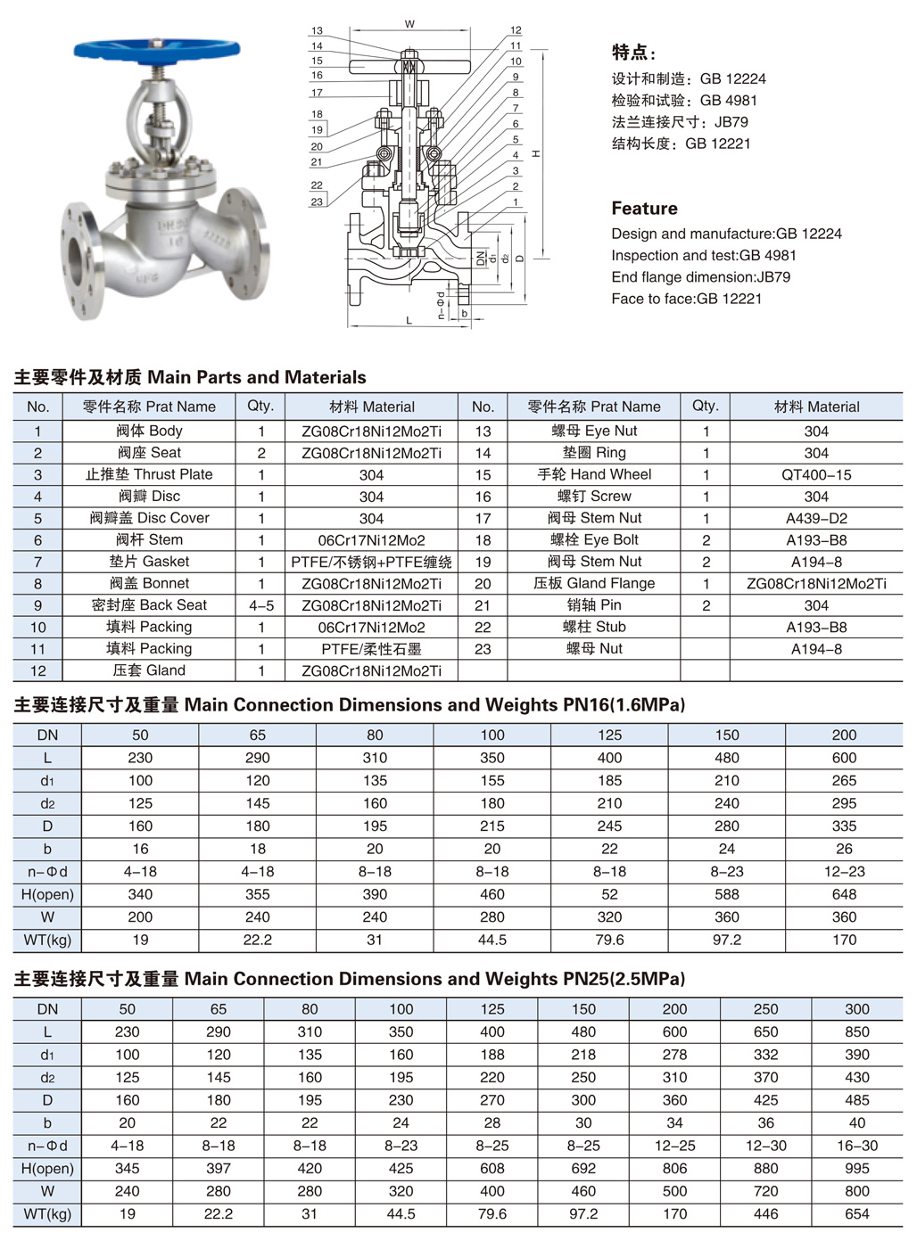 国标不锈钢法兰截止阀-PN16-PN25